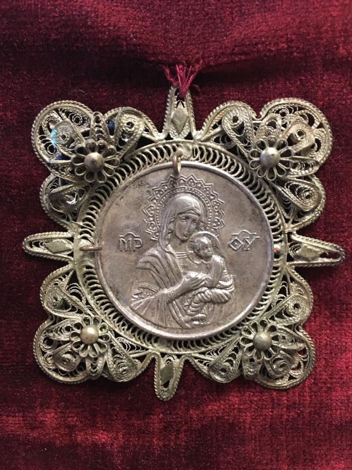 ceramic plate from Rhodes with hand painted designs and gold edging