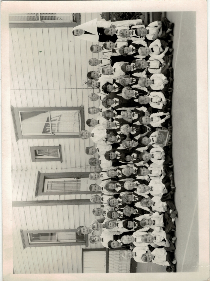 photograph of Dennis [surname unknown], Leonidas Metro, and Johnnie [surname unknown]