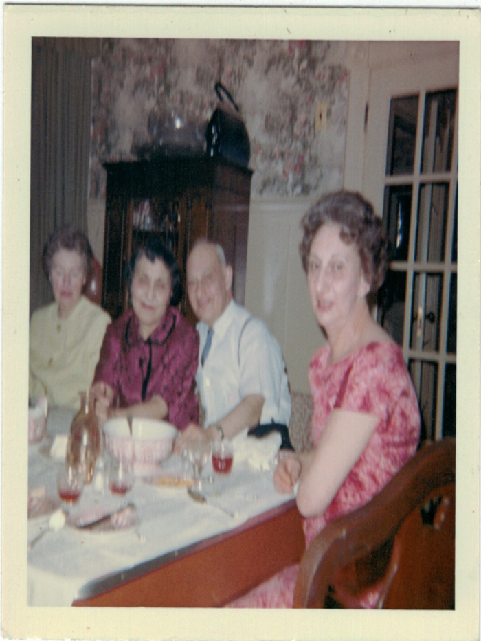 colour photograph of a family dinner, with Mary Metro, Leonidas Metro