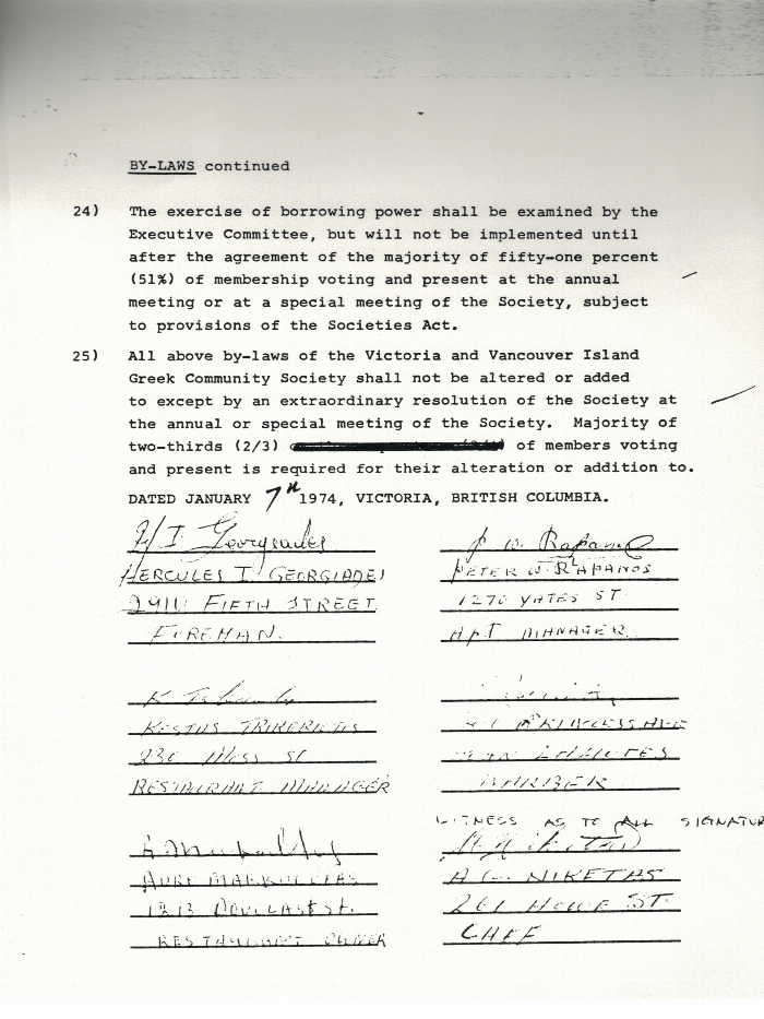 Bylaws that applied to the Victoria and Vancouver Island Greek Community Society
