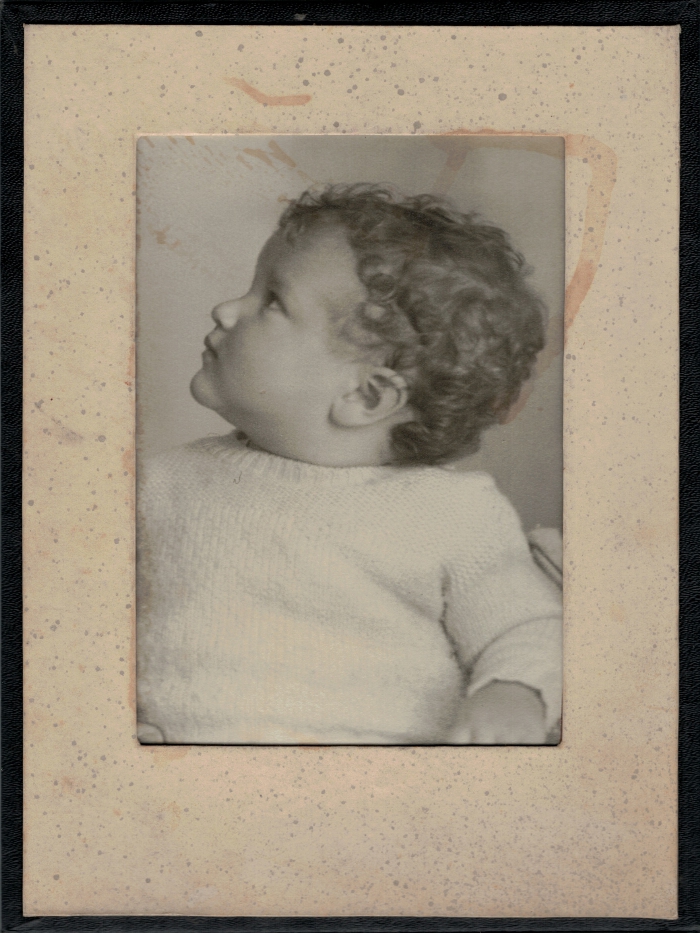 portrait of a toddler with curly hair in a white sweater